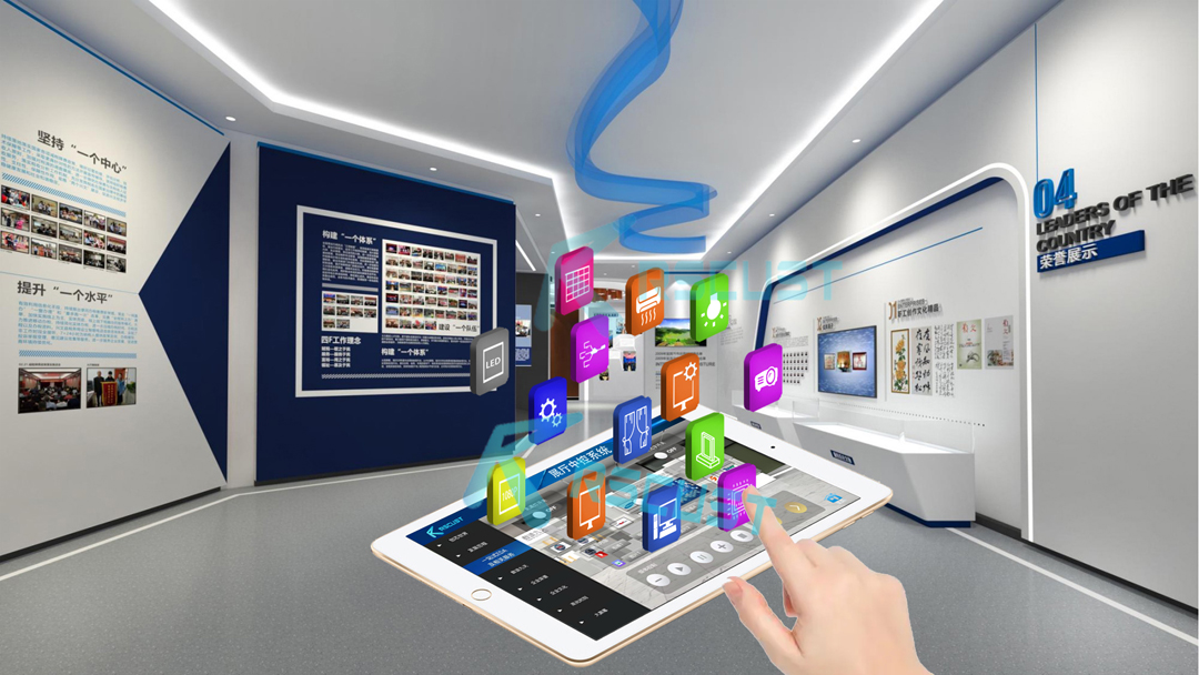 3、多媒体管理:中控系统还可以对展馆内的展项进行交互控制,如通过中控Pad播放视频、调节音量、播放图片、PPT翻页、发布迎宾词、启动语音讲解系统、切换灯光场景等......可根据项目需求定制更多应用交互。
